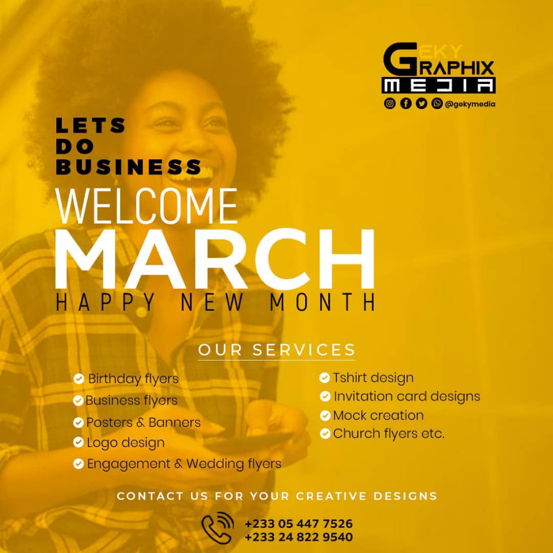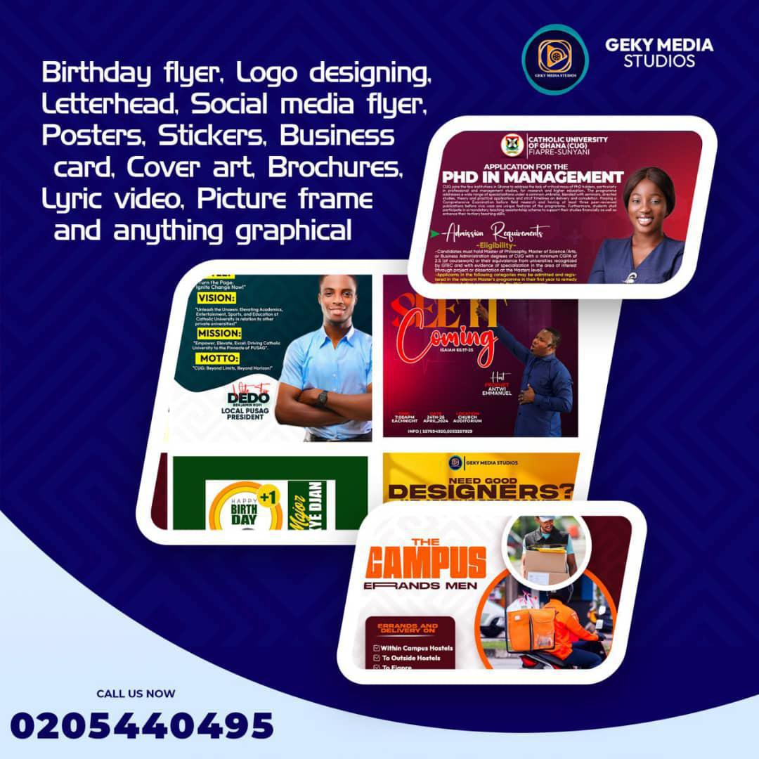 Geky graphix deals in all kinds of graphic design works such as; birthday flyers, business flyers, posters, and also youtube channel art, logos, Tshirt, mock-ups, Jingles and other video editing works like video ads, lyrics video and many more